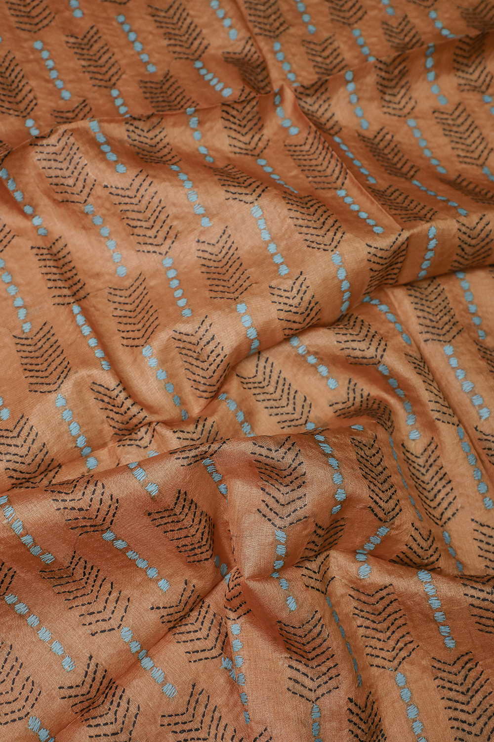 Hand-crafted Intricately Embroidered Kantha tussar silk blouse material. Add elegance to your wardrobe with a charming collection of Silk blouses. Mix and match textures, fabrics, and colors to create a style you can call your own. Pair it up with plain tussar sarees for a desi look.