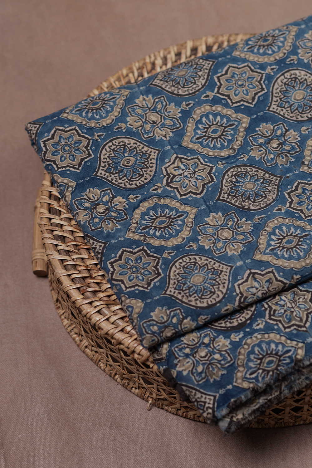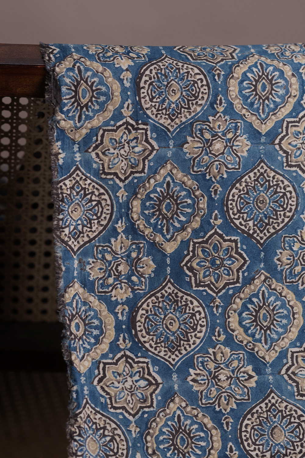 Patterns on Muted Indigo Ajrak Cotton Fabric