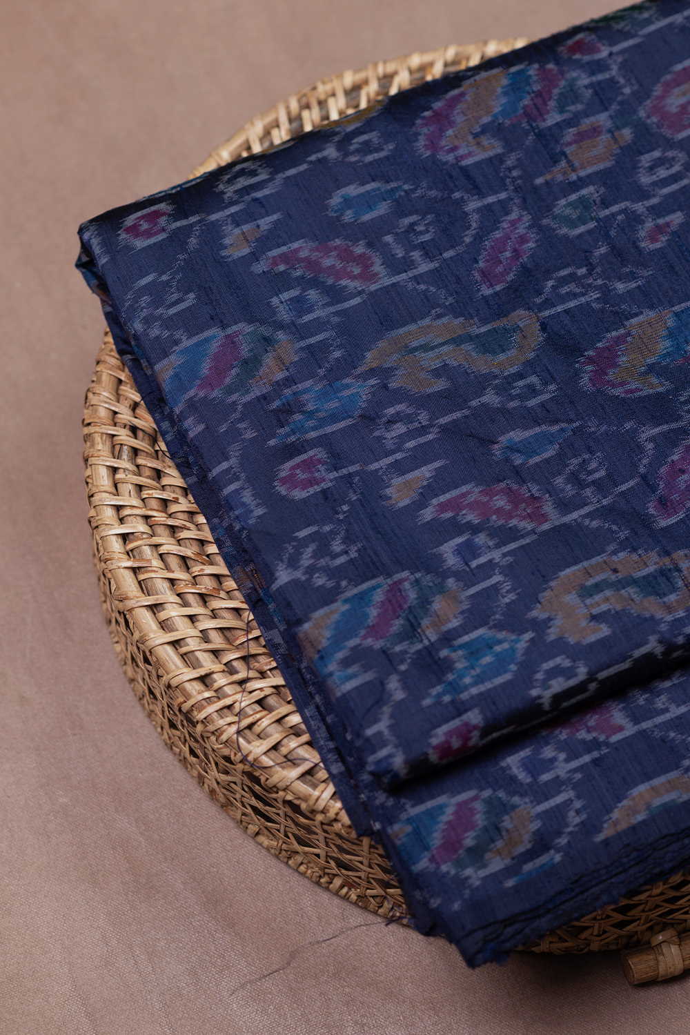Blue Indigo Ikat Raw Silk Fabric
