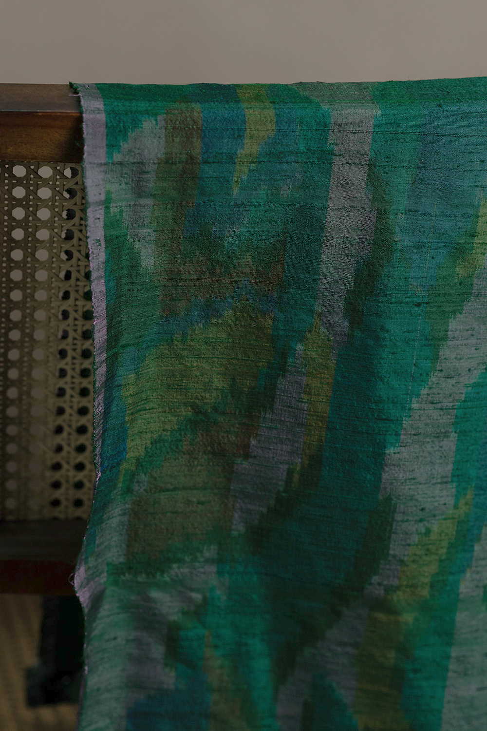 Monsoon Green Ikat Raw Silk Fabric