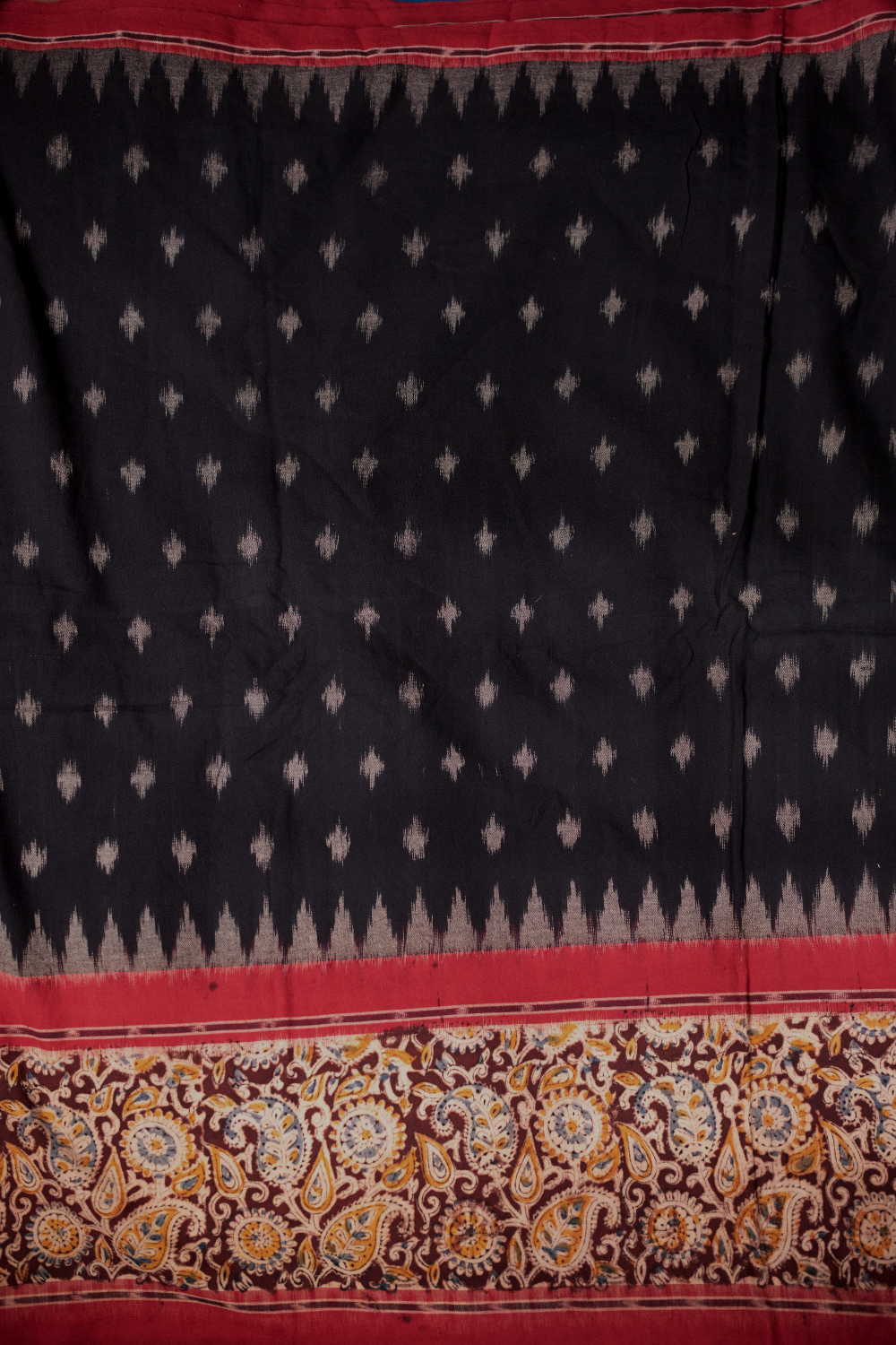 Beautiful Hand woven Ikat fabric with big hand Printed Kalamkari border. Handwoven cotton material, for unmatched grace and elegance.