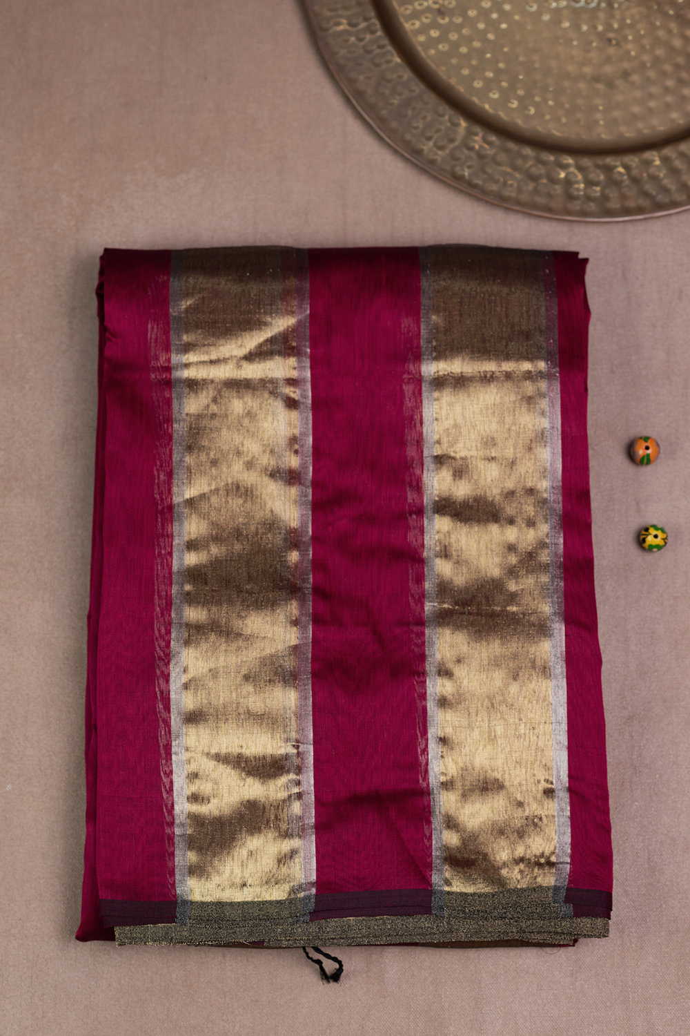 Dark Pink with Gold Maheshwari Silk Cotton Saree