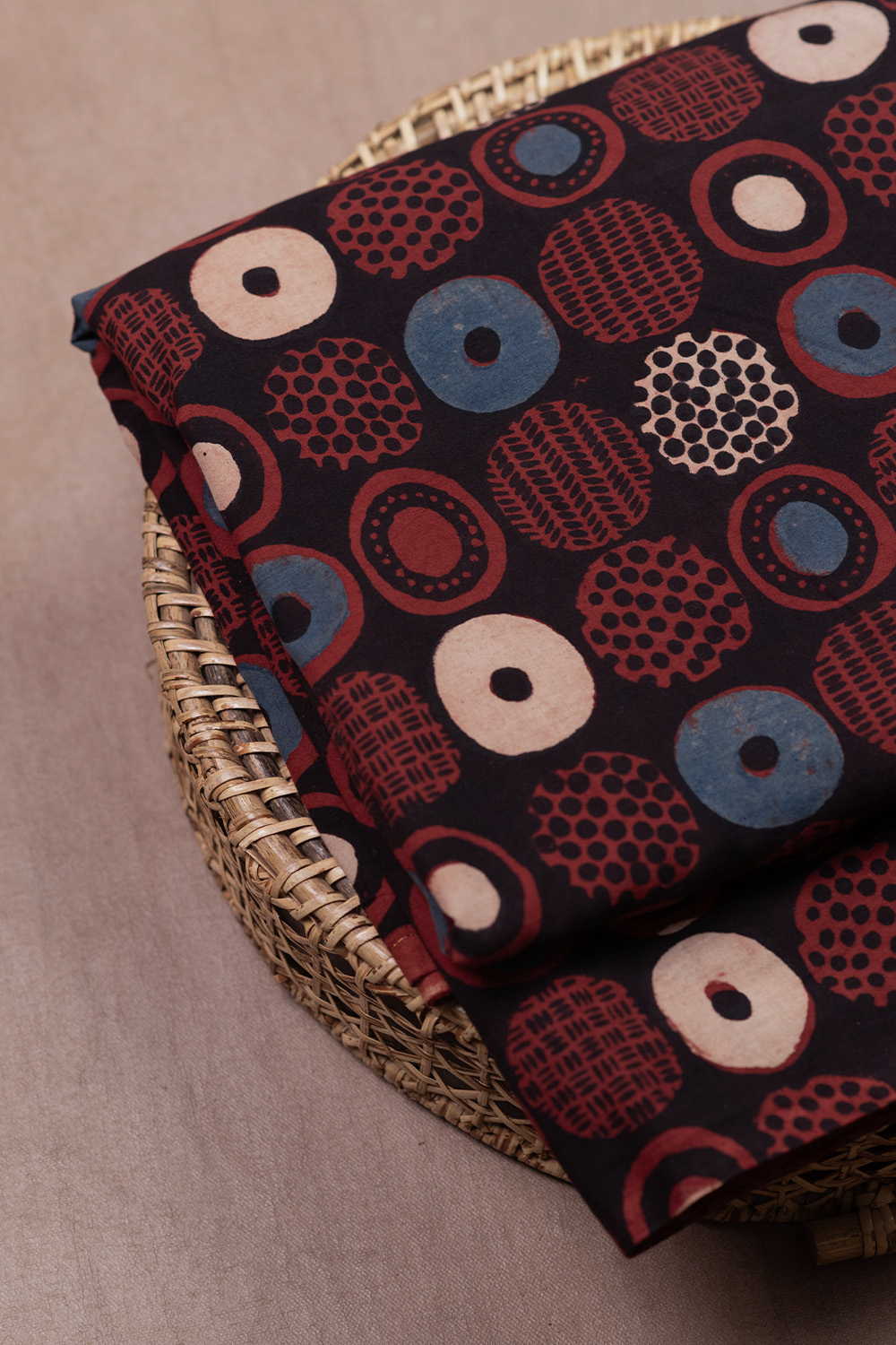 Circle Patterns Ajrak Cotton Fabric