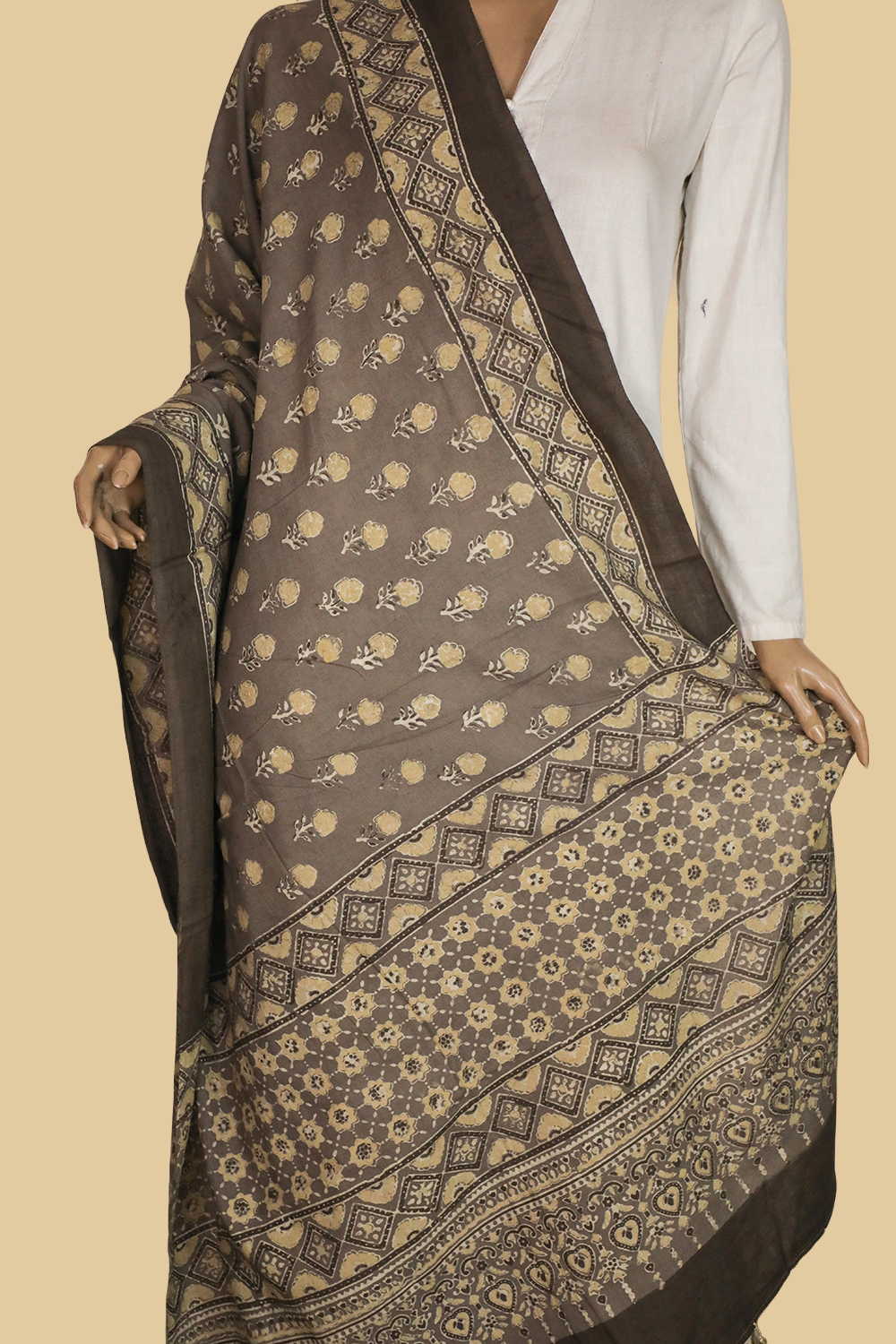 Grey Florets Ajrak Cotton Dupatta
