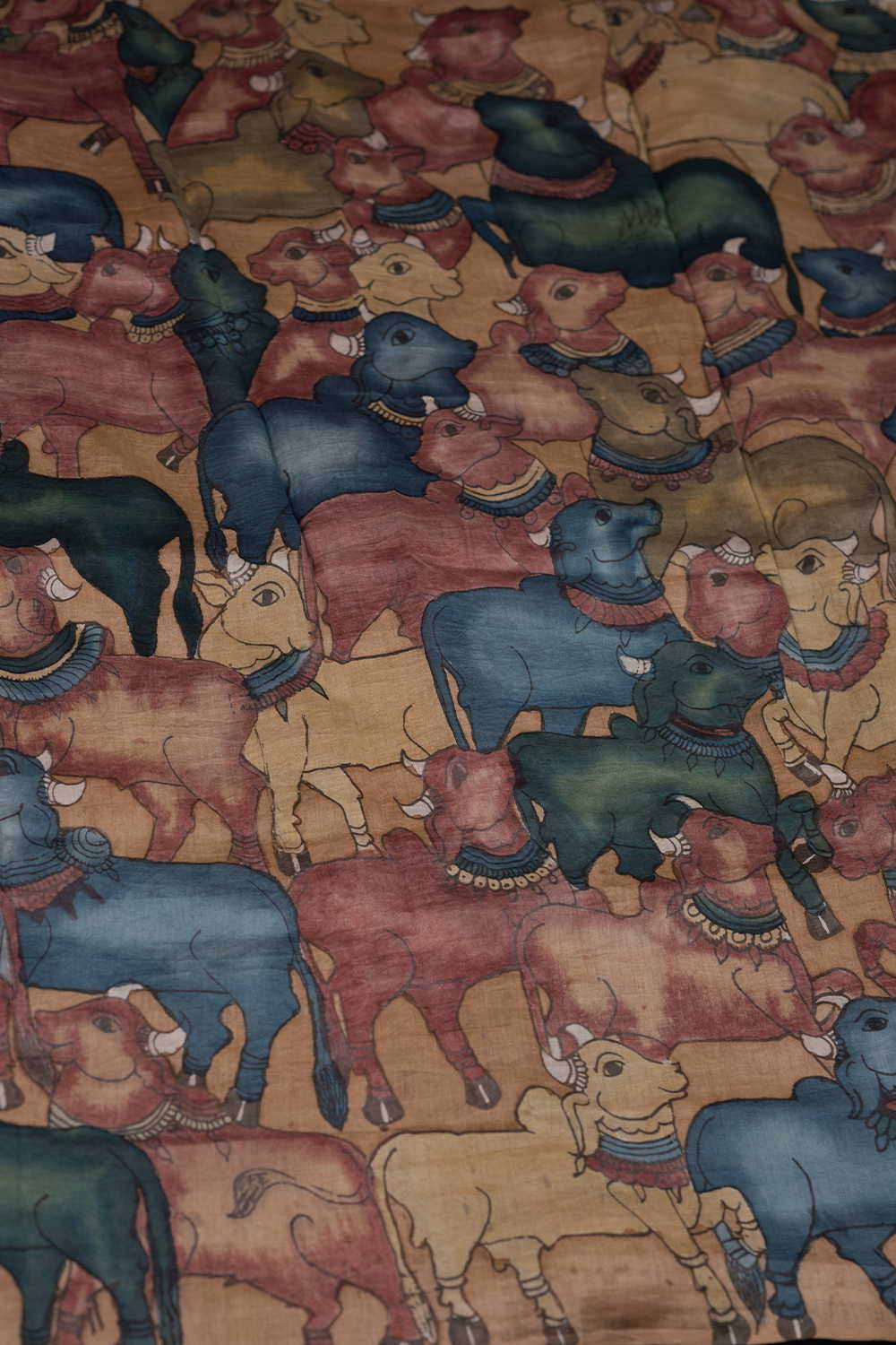 Earthbound Cows Painted kalamkari Mul Chanderi Silk Cotton Fabric