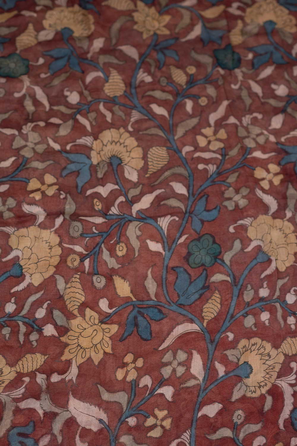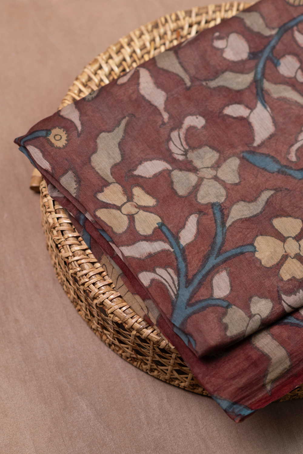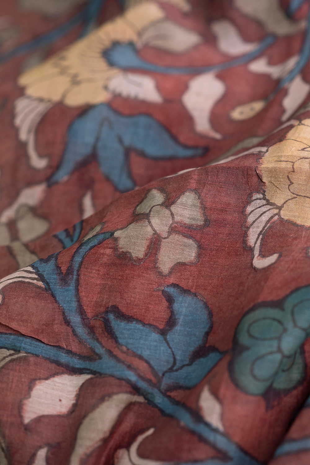Muted Maroon Painted kalamkari Mul Chanderi Silk Cotton Fabric