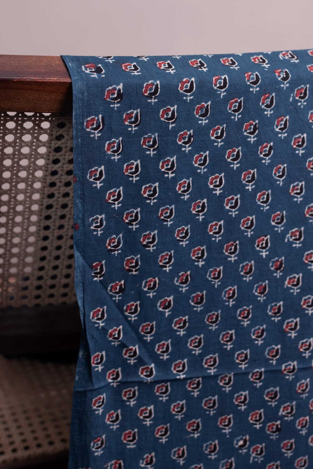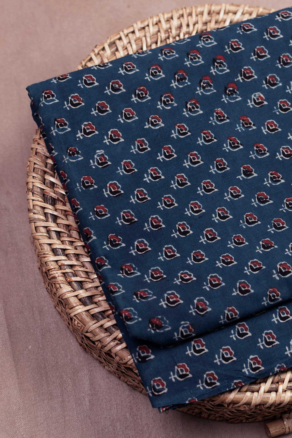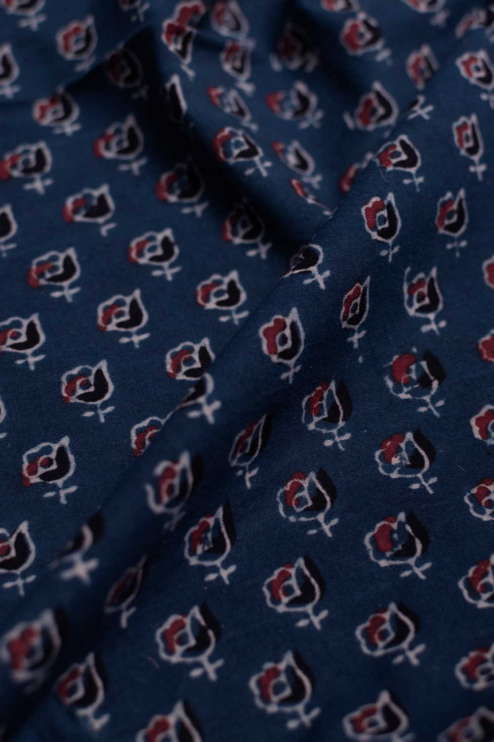 The Intricate block prints from Kutch with their Sindhi roots comes in definite geometric and floral patterns in natural shades. Ajrak is very distinct from the other styles of block printing and can be identified with the intricacy of prints and the natural tone. Soft cambric cotton fabric with Ajrak block prints - define your unique style. The Design is Parallel to the Length.