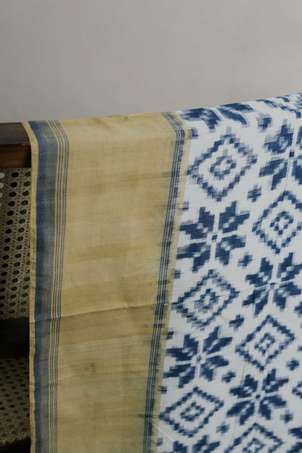 Blue Pattern on Cream Telia Rumal Ikat Cotton Fabric - 0.65m