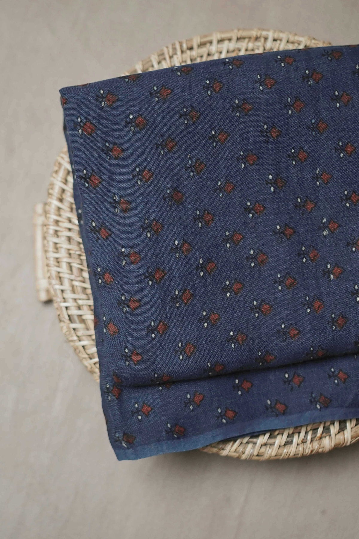 Maroon Little Motifs on Indigo Ajrak Linen Fabric - 0.5m