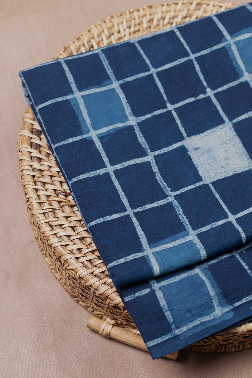 Checkmate in Indigo Dabu Cotton Fabric - 0.9m