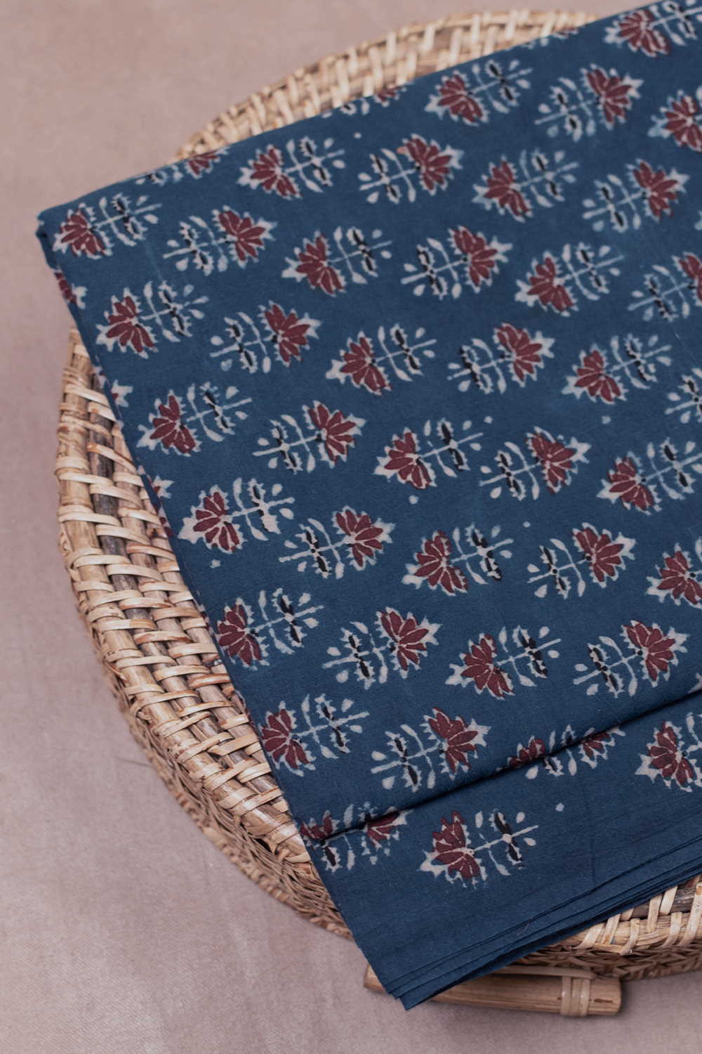 The Intricate block prints from Kutch with their Sindhi roots comes in definite geometric and floral patterns in natural shades. Ajrak is very distinct from the other styles of block printing and can be identified with the intricacy of prints and the natural tone. Soft cambric cotton fabric with Ajrak block prints - define your unique style. The Design is Parallel to the Length.