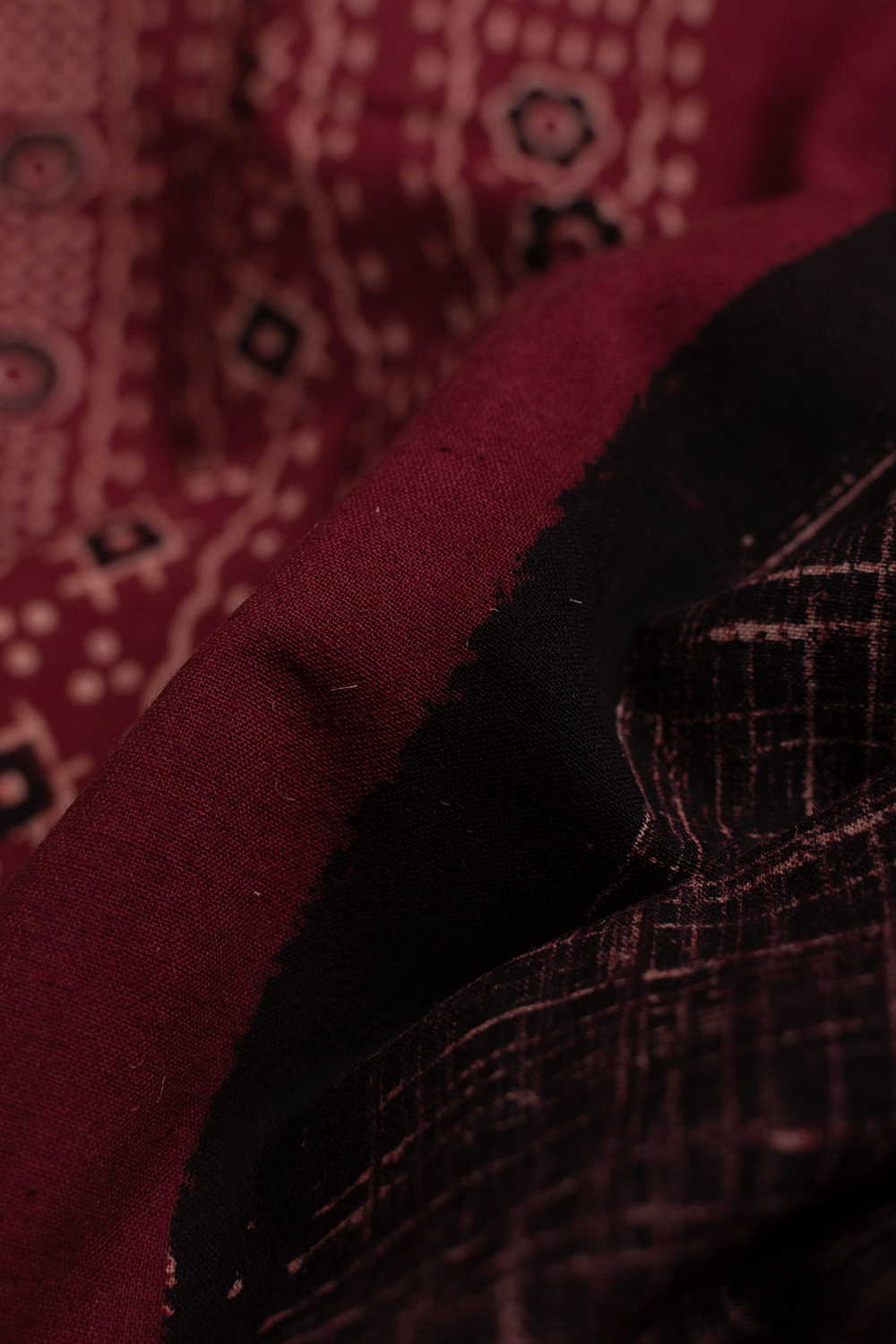 Maroon Bordered - Ajrak Cotton Fabric - 1.1m