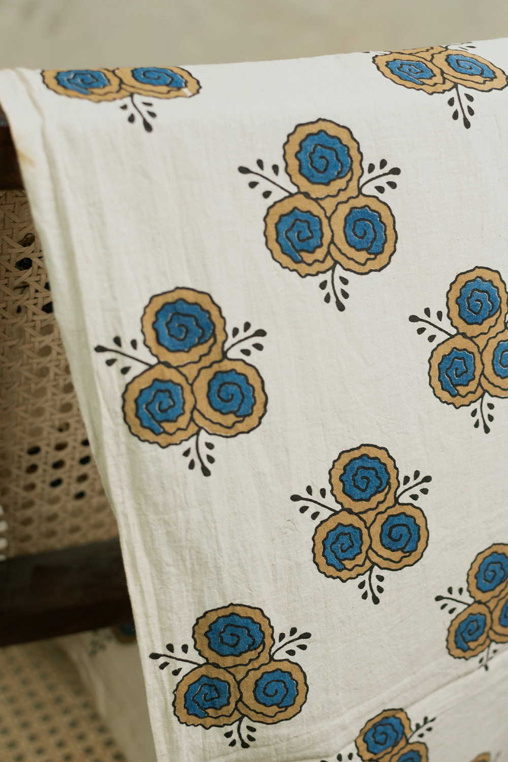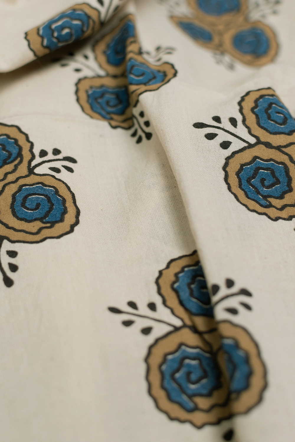 The Intricate block prints from Kutch with their Sindhi roots comes in definite geometric and floral patterns in natural shades. Ajrak is very distinct from the other styles of block printing and can be identified with the intricacy of prints and the natural tone. Soft cambric cotton fabric with Ajrak block prints - define your unique style. The Design is Parallel to the Length.