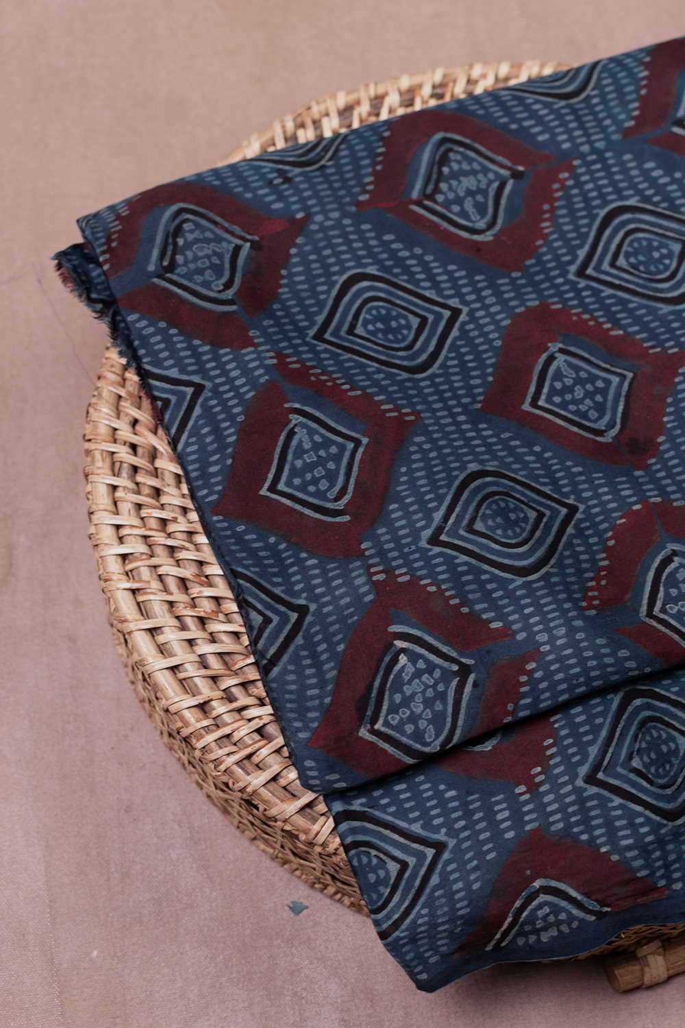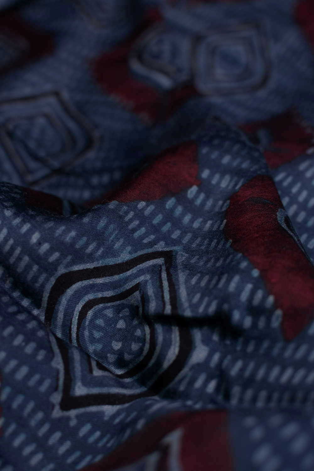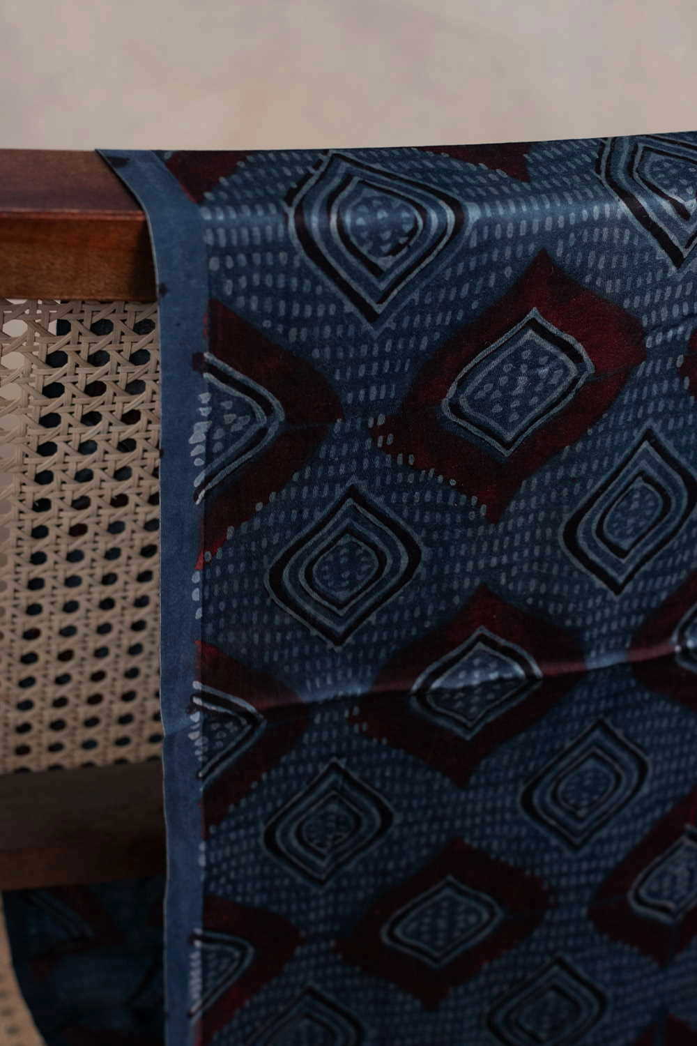 Maroon Pattern on Indigo Ajrak Modal Silk Fabric - 1m