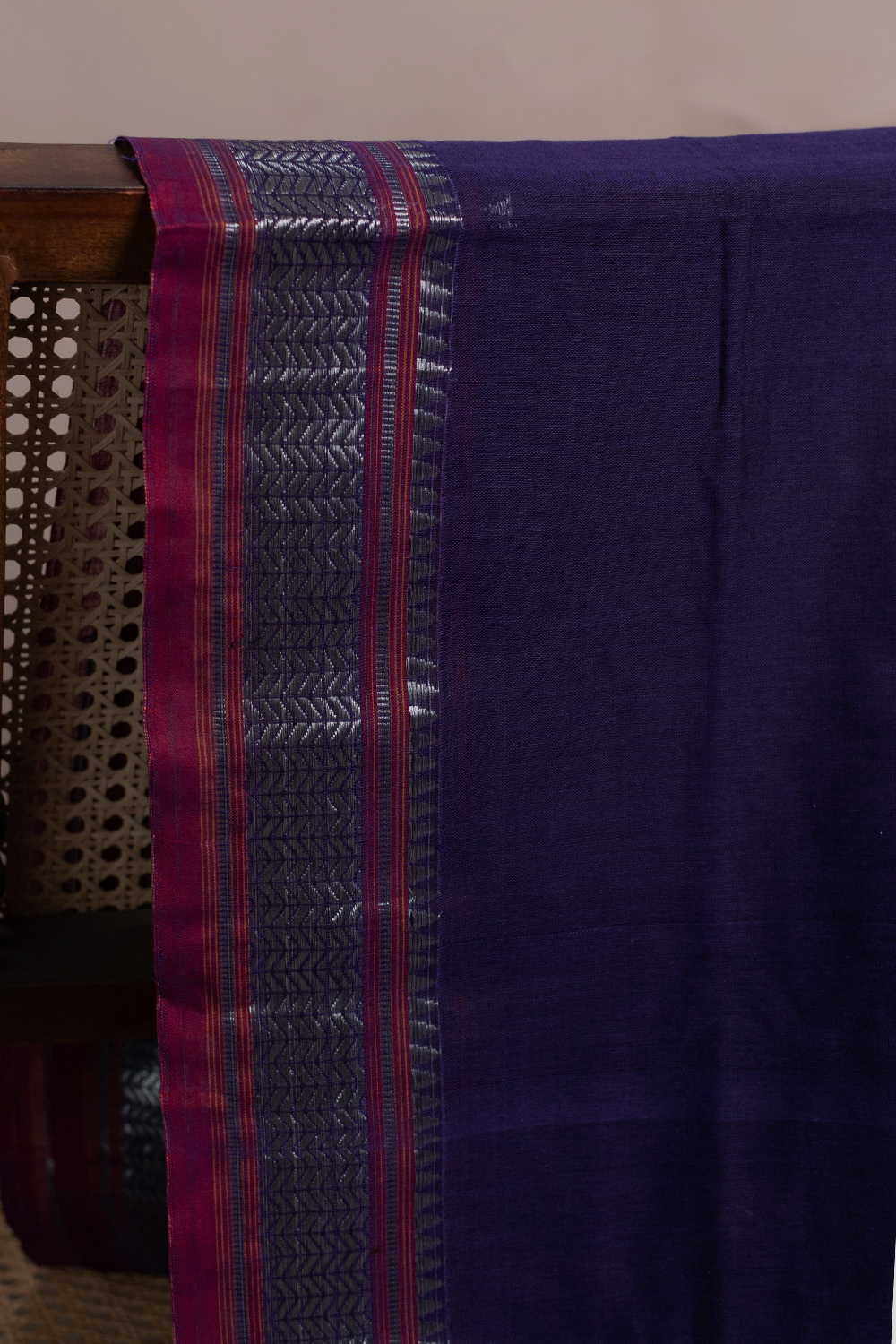 Grape Purple Narayanpet Silver Zari Border Cotton Fabric - 0.6m