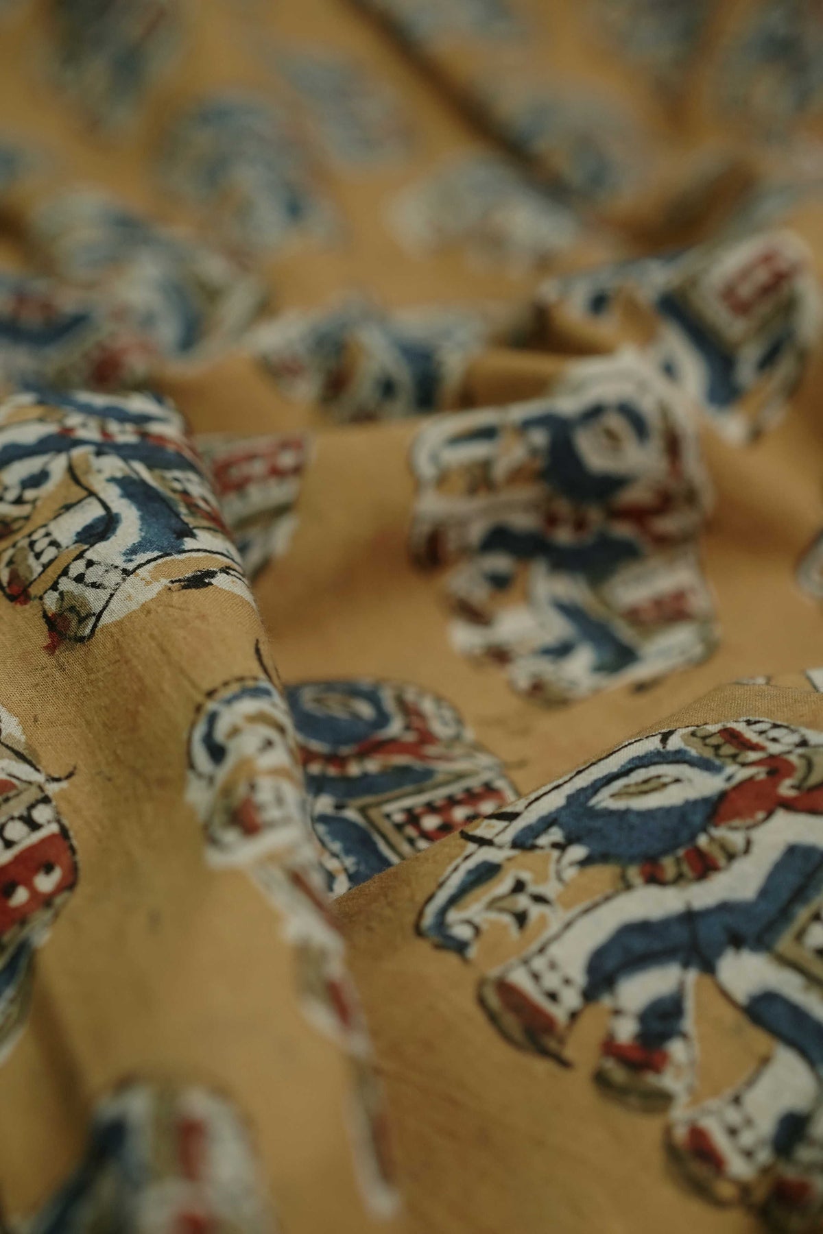 Elephant Motifs Printed kalamkari Fabric - 1.85m