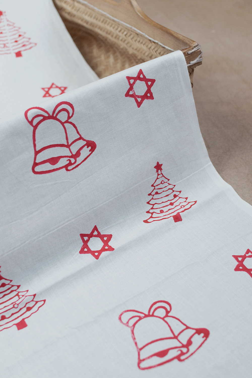 X-Mas Trees & Bells Block Printed Cotton Fabric - 2.3m