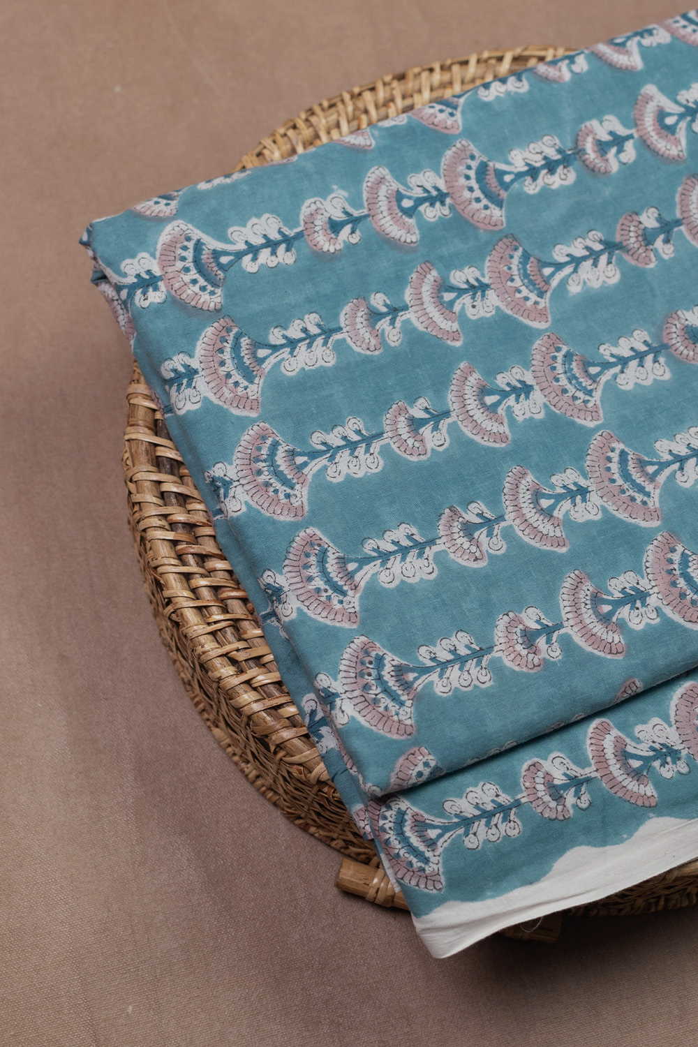 Earthy Floral Teal Blue Sanganeri Fabric - 0.6m