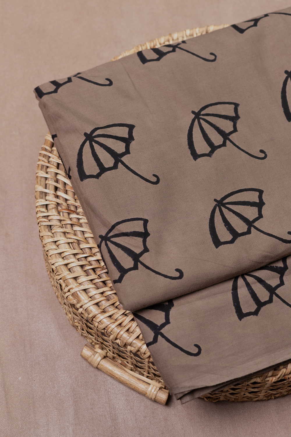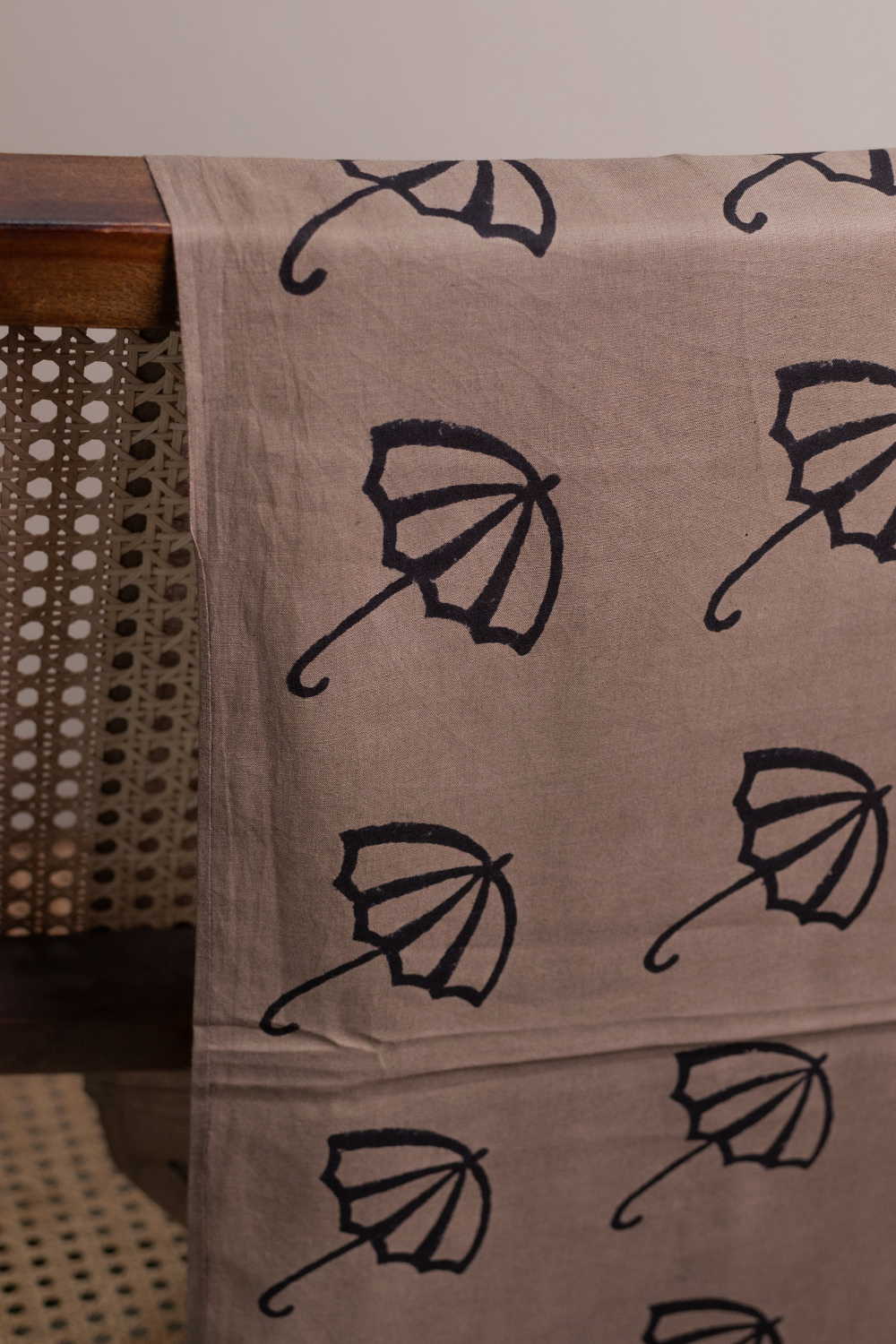 Dreamy Umbrella Block Printed Cotton Fabric - 1M