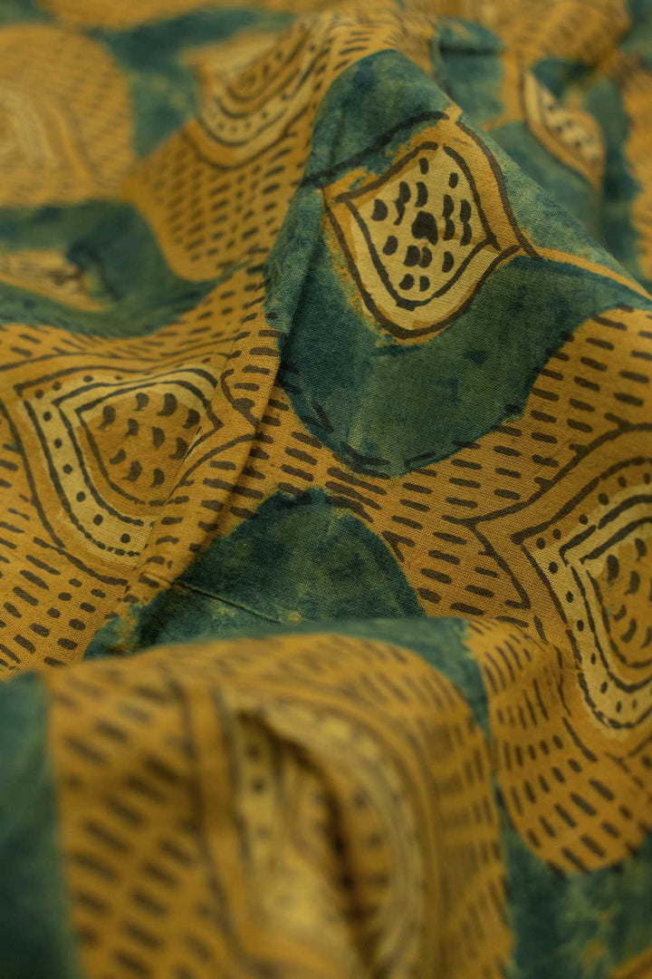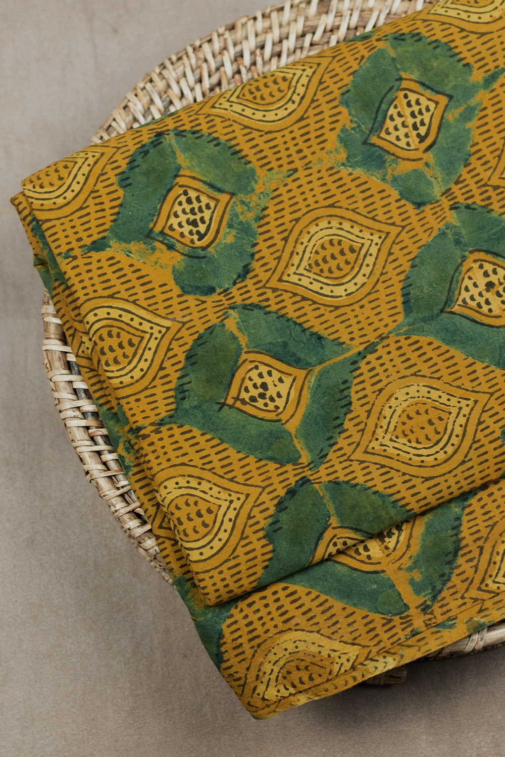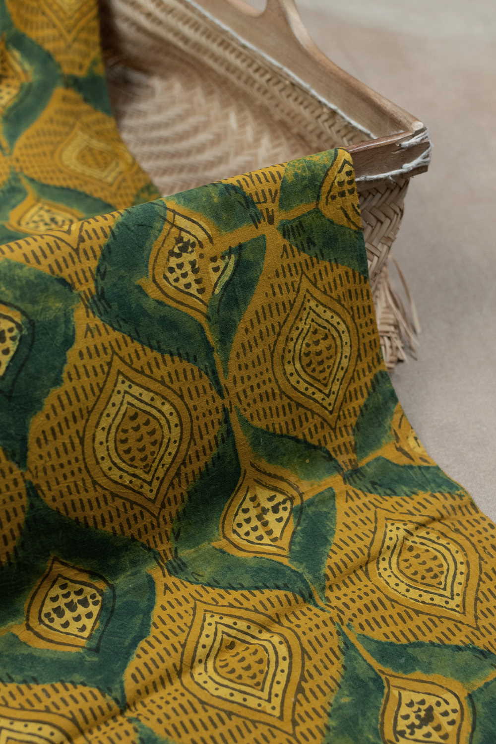 Dark Yellow with Green Ajrak Cotton Fabric - 1.3m