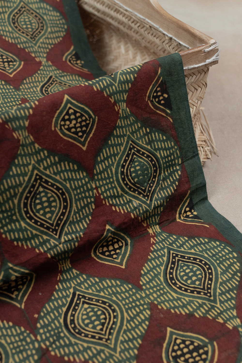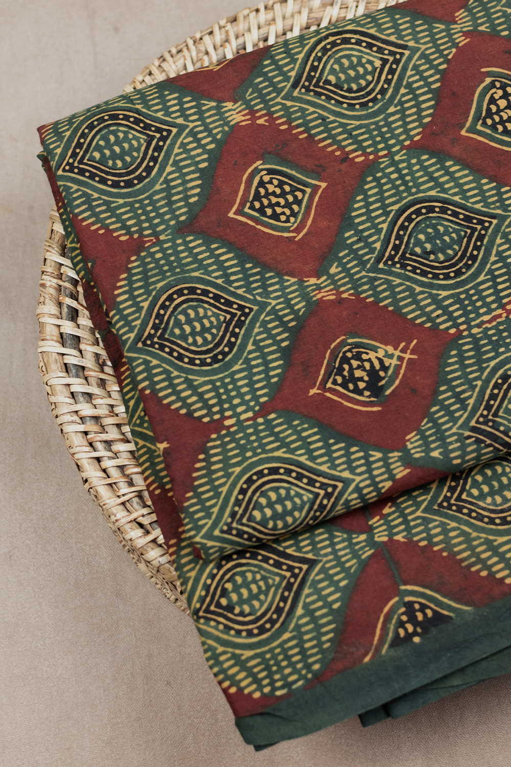 Green & Maroon Ajrak Cotton Fabric - 0.85m