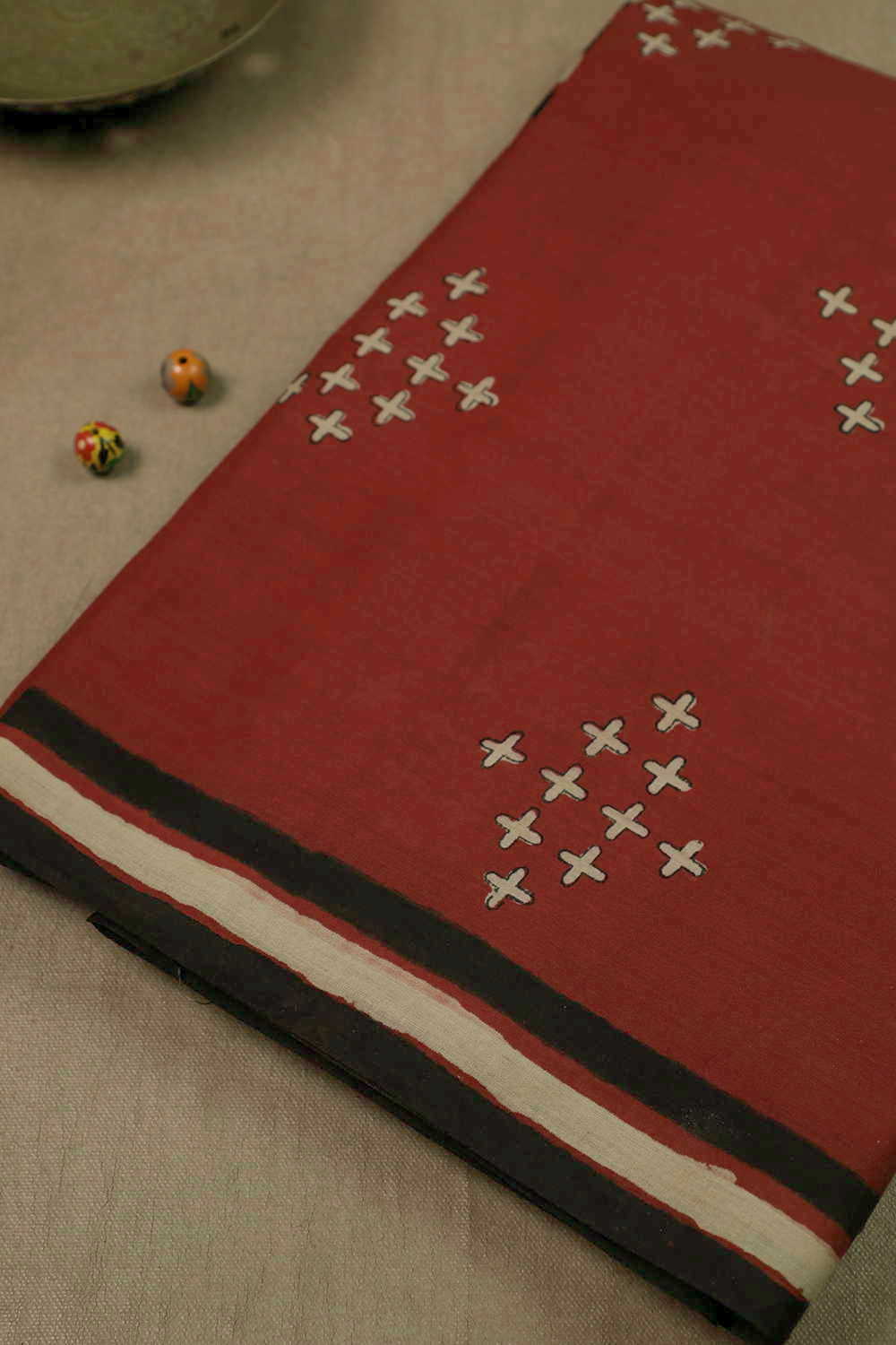 Scarlet Maroon Ajrak Maheshwari Silk Cotton saree