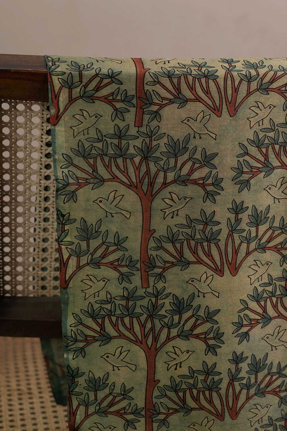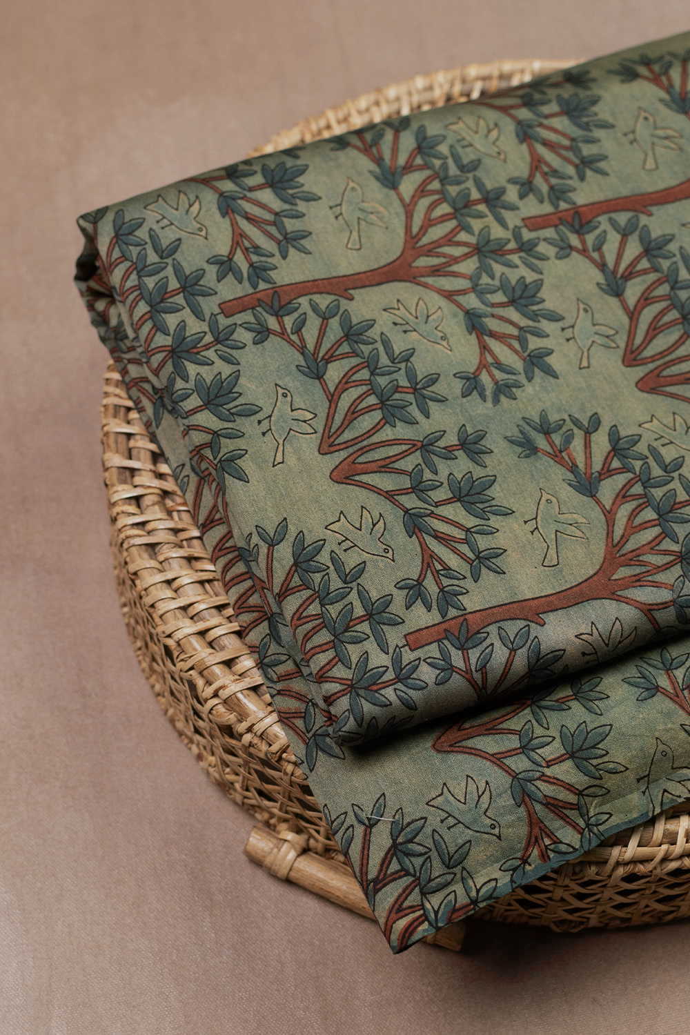 Trees on Green Chanderi Silk Cotton Fabric