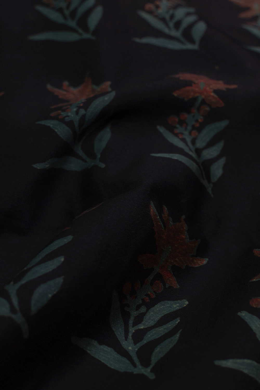Black with Blossoms Chanderi Silk Cotton Fabric