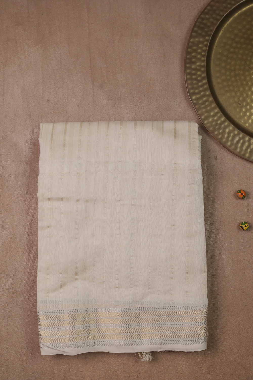 stripes on Cream Maheshwari Silk Cotton saree
