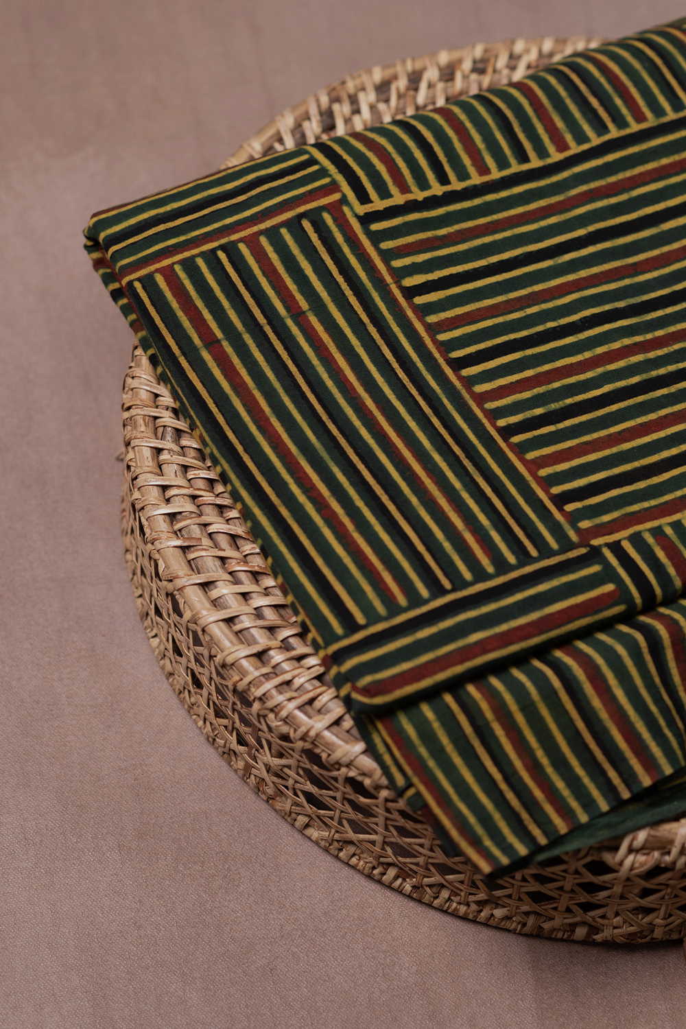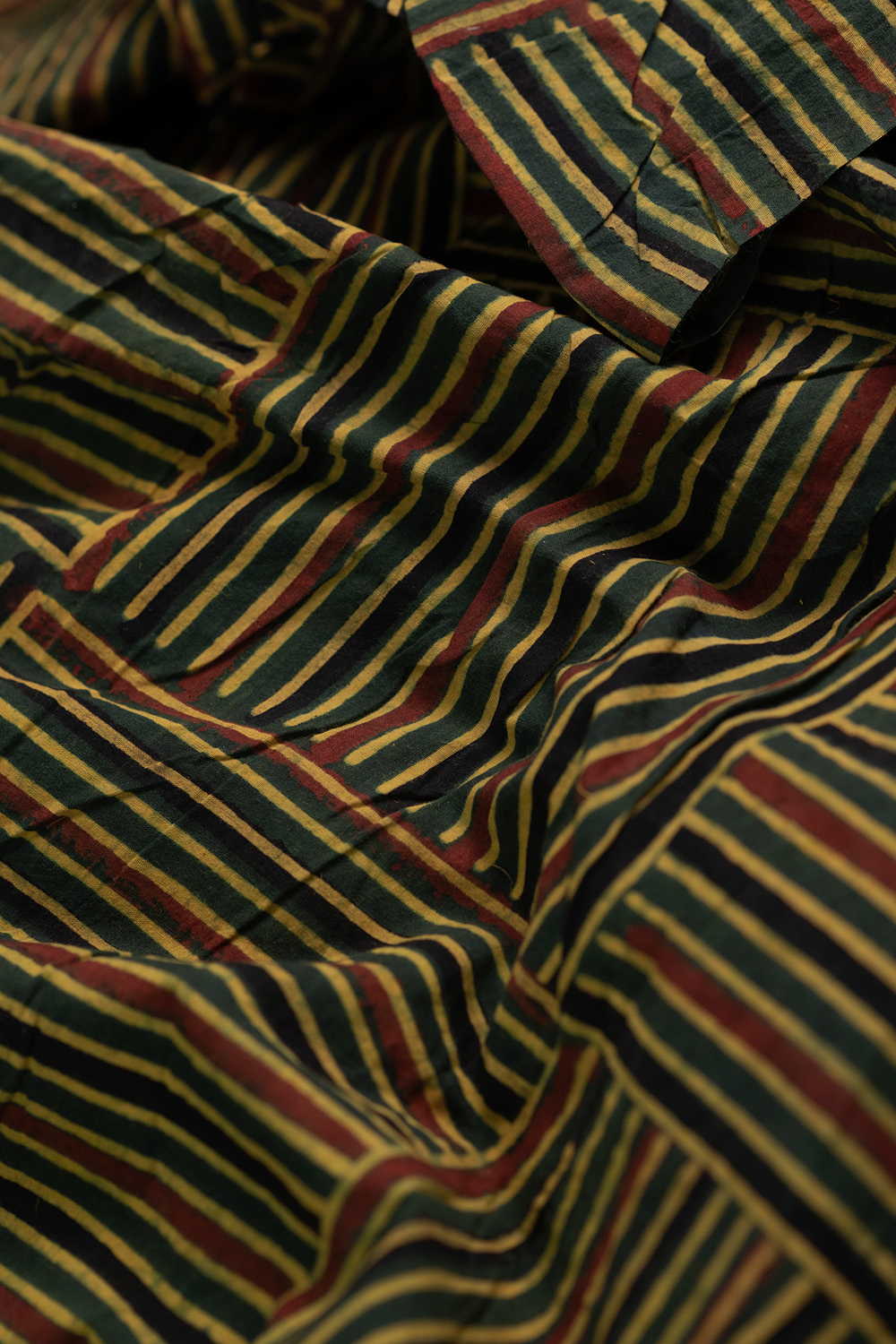 Lines on Green Ajrak Cotton Fabric - 0.95m