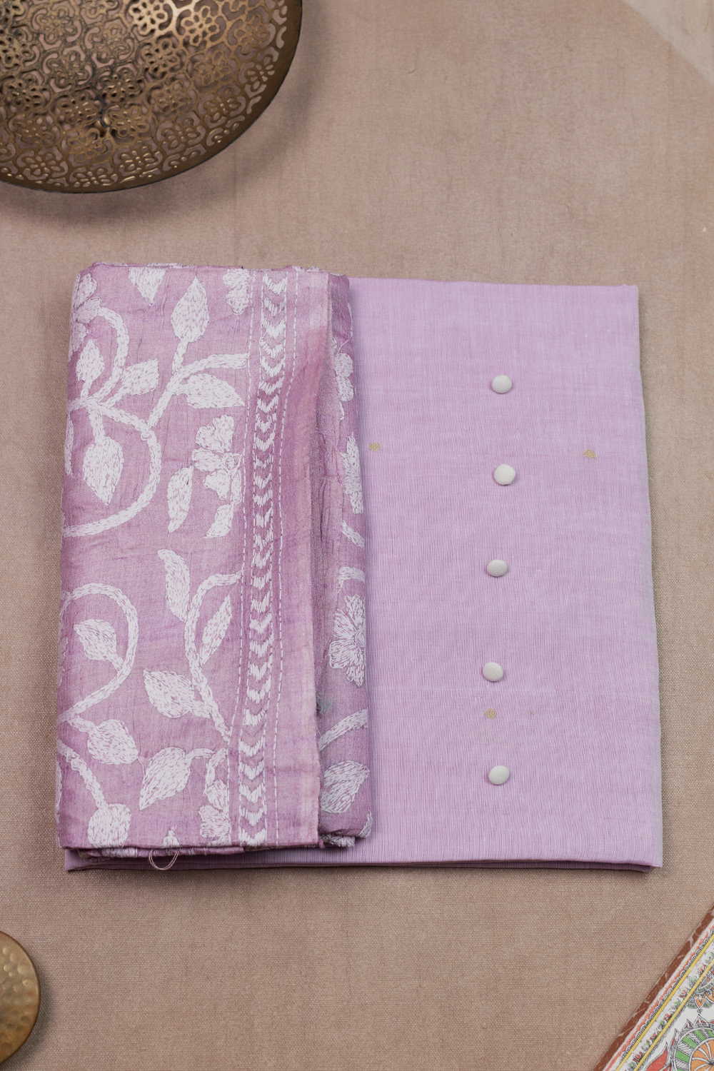 Lavender Purple Chanderi Cotton Top & Kantha Dupatta