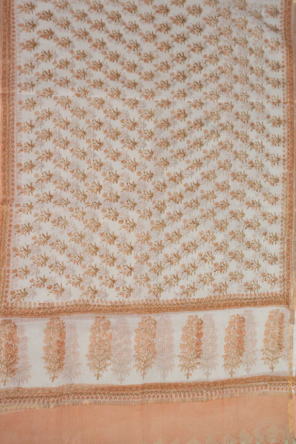 Make a statement with this Yellowish Orange Mangalagiri Cotton Top With Cream with Florets Kota Cotton Dupatta. Nice catchy colours and a comfortable texture makes this an all time favourite.