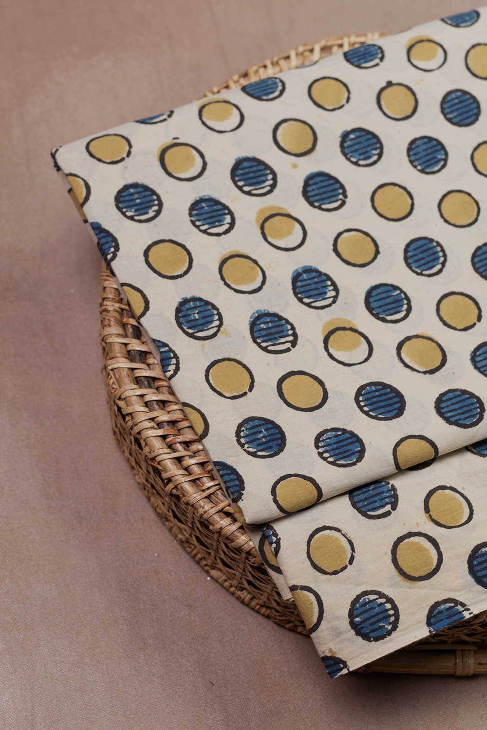 Yellow & Blue Rings Ajrak Cotton Fabric