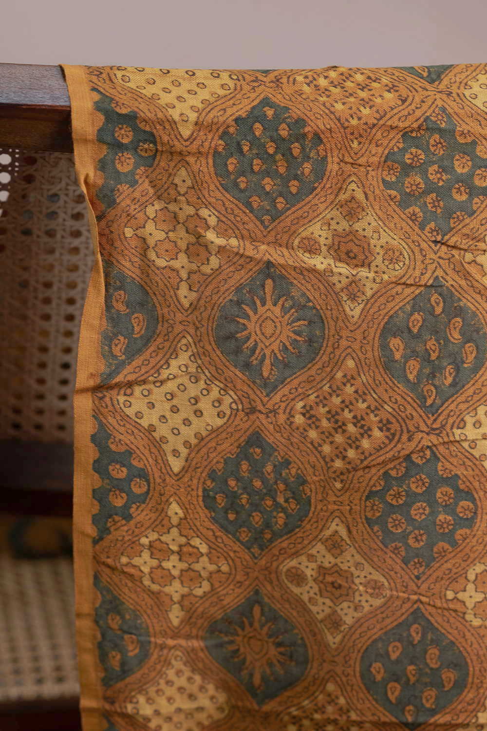 Mustard Yellow Ajrak Linen Fabric