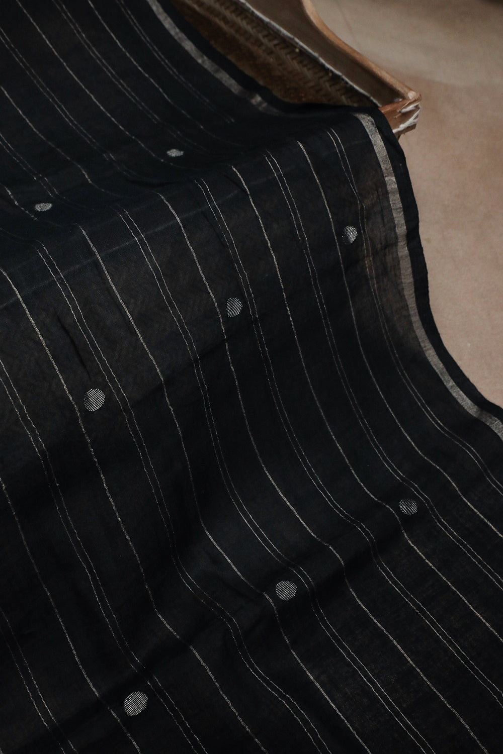 Silver Zari Stripe on Black Jamdani Cotton Fabric