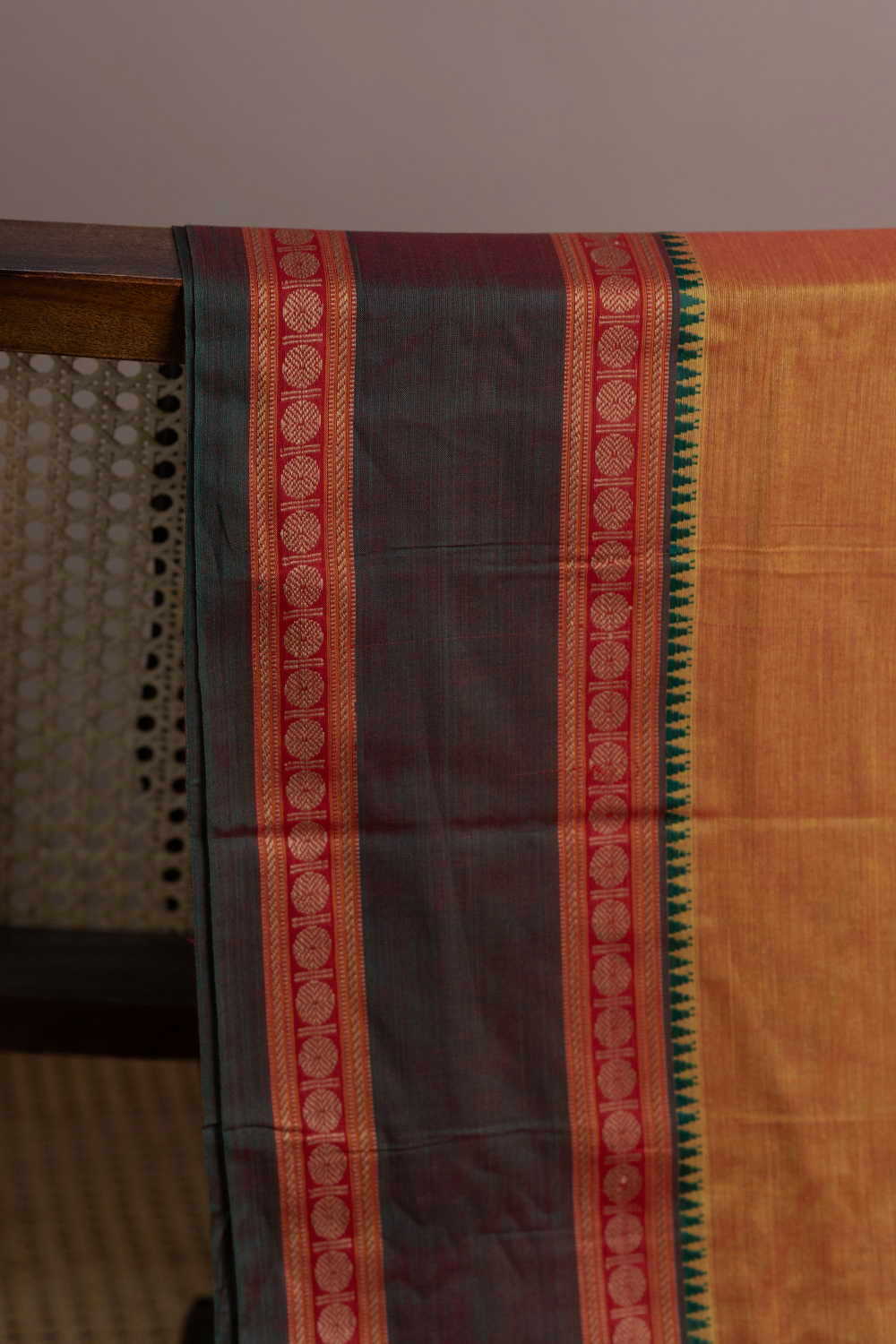 Handwoven Narayanpet cotton Fabric comes with a Gold Zari border giving it a distinguished look. Buy online Traditional Handwoven Narayanpet cotton fabrics with just the right dash of colours. This fabric has a 2different color Borders.