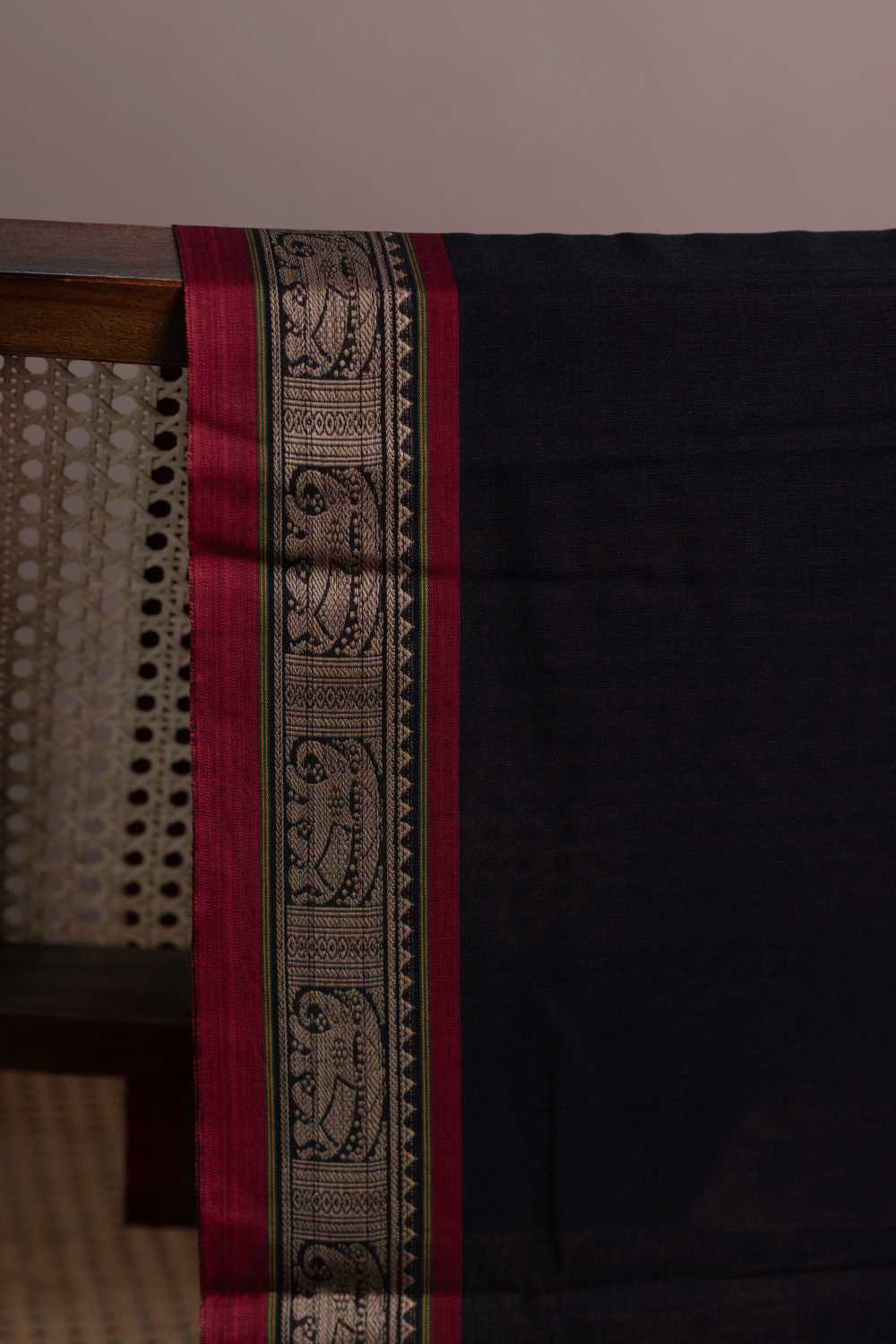 Handwoven Narayanpet cotton Fabric comes with a Gold Zari border giving it a distinguished look. Buy online Traditional Handwoven Narayanpet cotton fabrics with just the right dash of colours. This fabric has a big border on one side and a small border on the opposite side.
