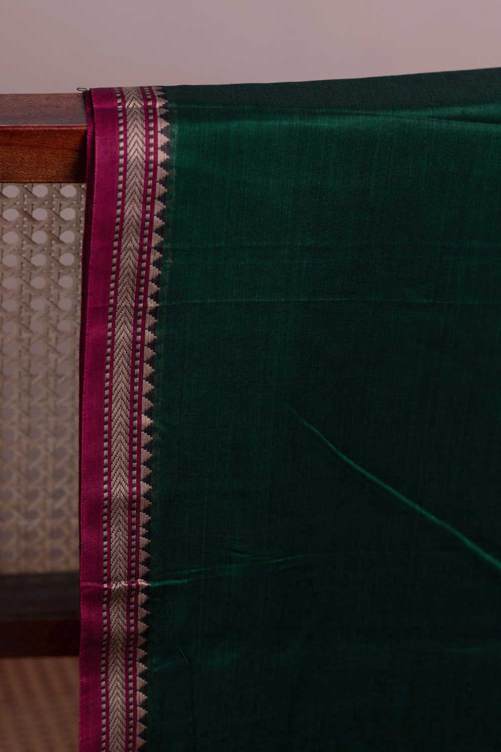 Deep Bottle Green Narayanpet Border Cotton Fabric