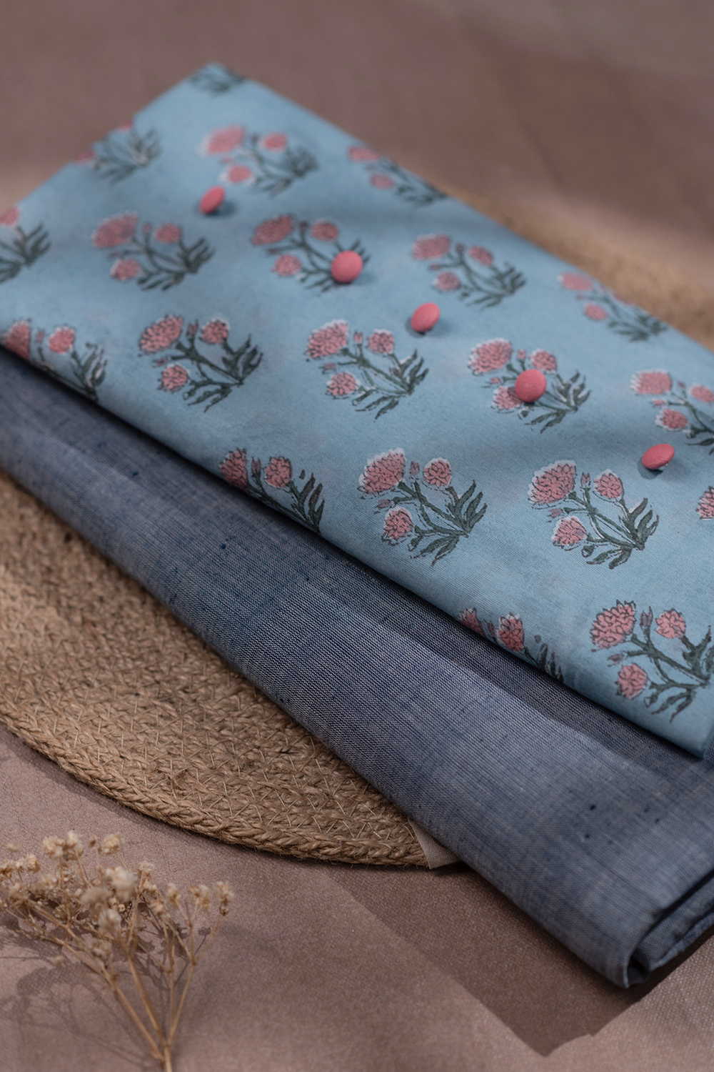 Floral Mist on Blue Sanganeri Top with Handspun Bottom