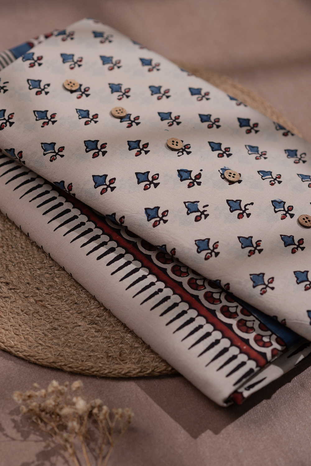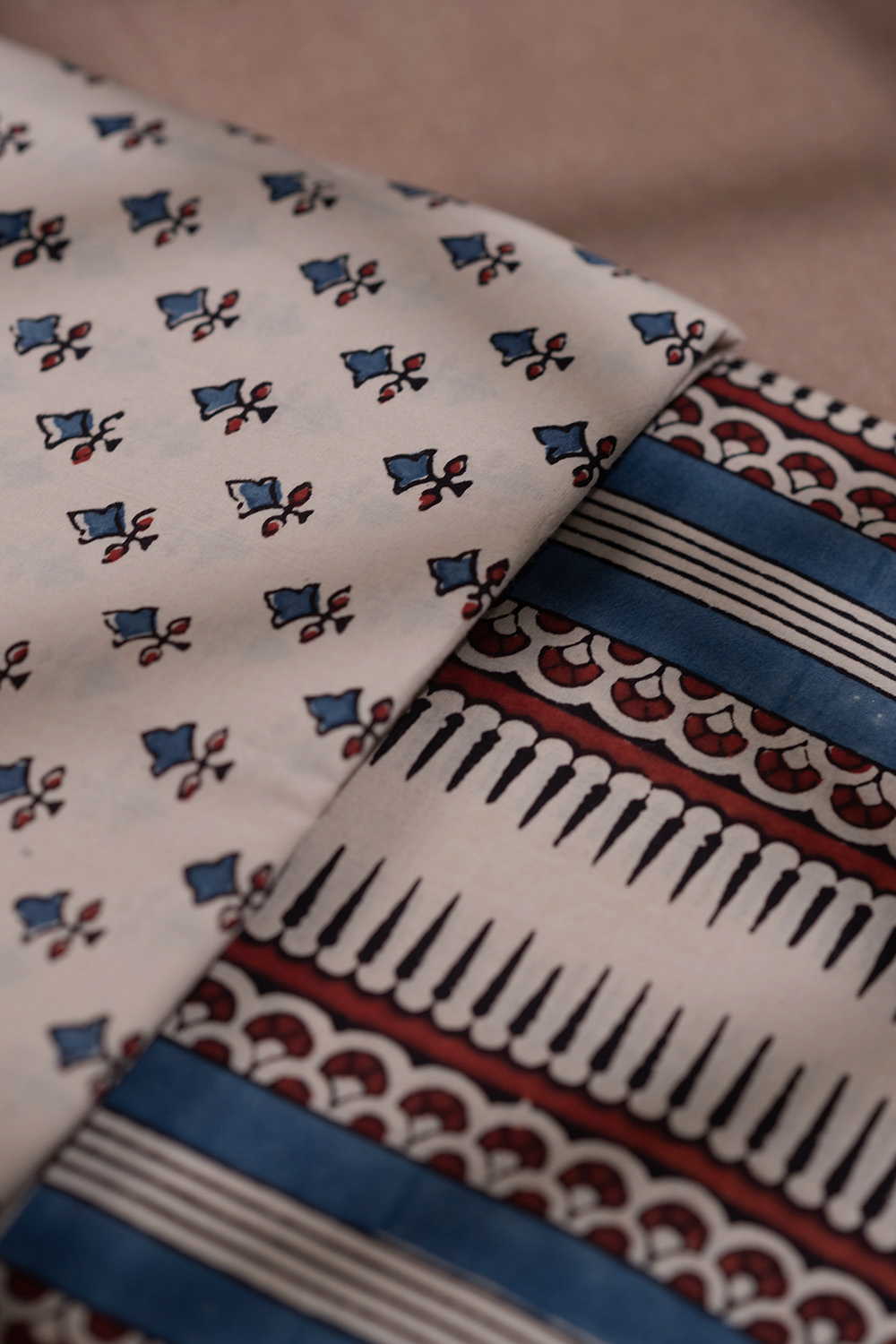 Cream with Tiny Motifs Ajrak Cotton Top with Bottom