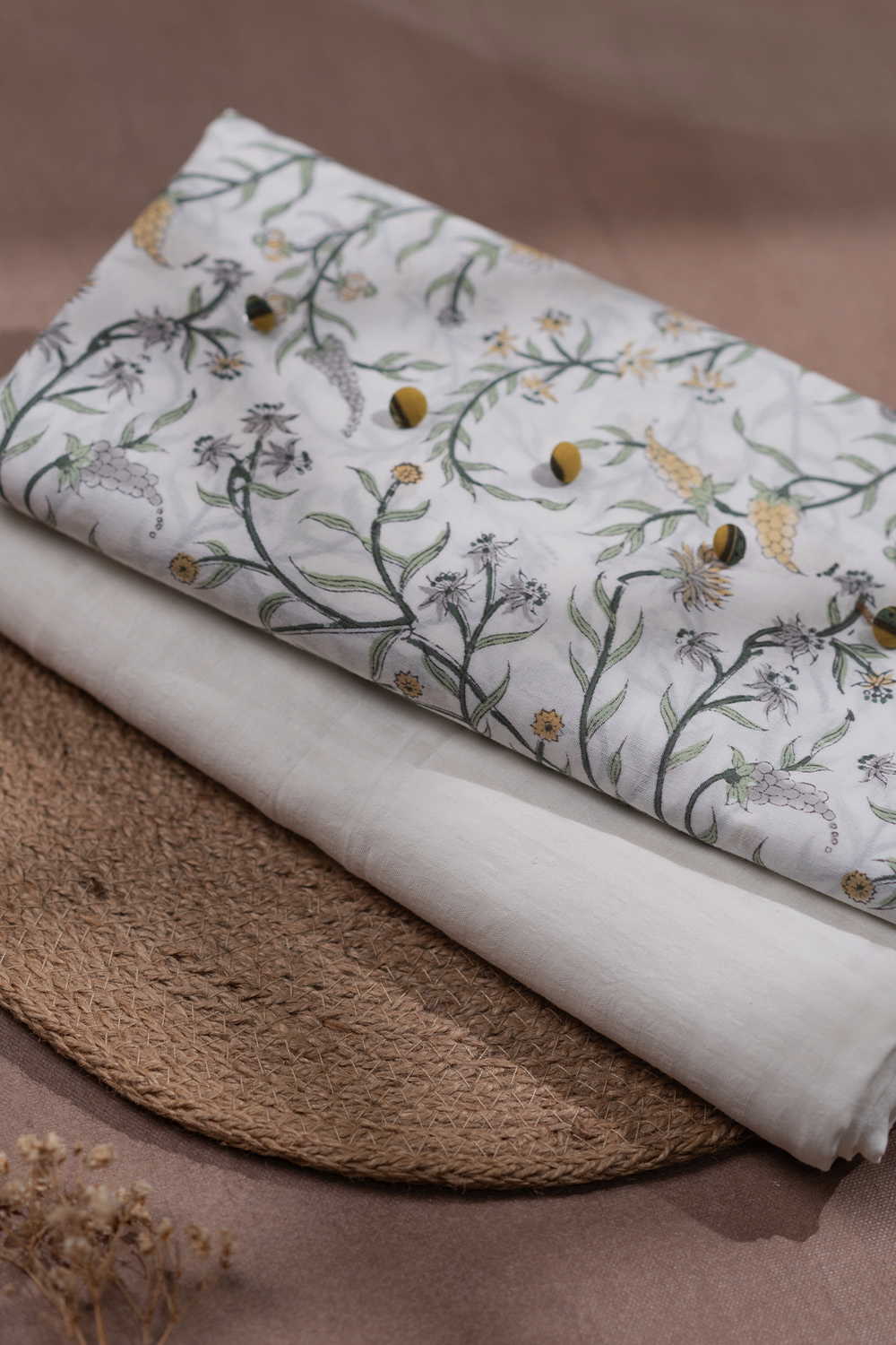 Floral Branch Sanganeri Top with Handwoven Bottom